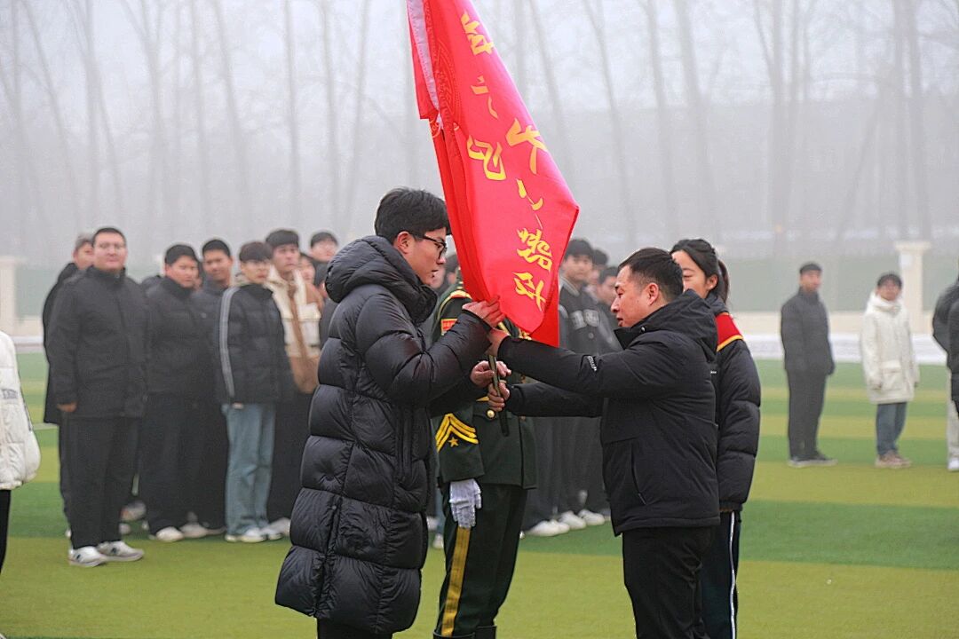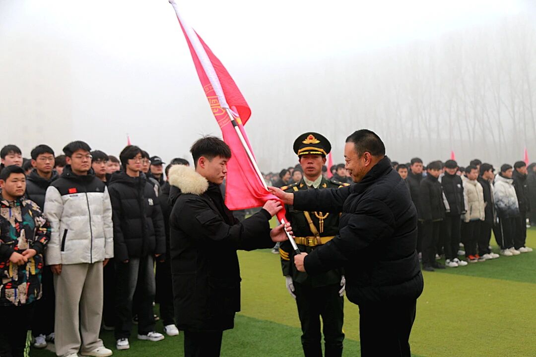 授旗仪式将现场气氛推向高潮。校领导们依次为各班级授发象征目标与决心的冲刺战旗。各班旗手郑重接旗,奋力挥舞,旗帜飘扬,展现了各班级锐意进取、誓夺胜利的集体斗志。