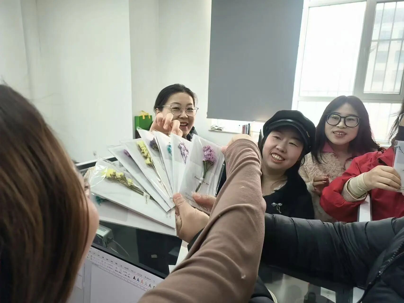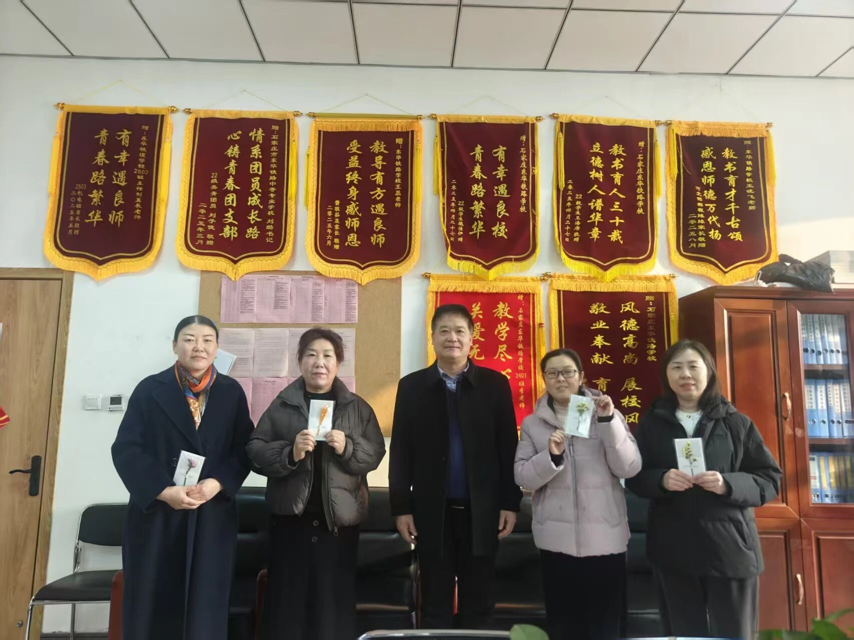 伴随着清晨的问候,女教职工们陆续走进办公室。等待她们的,不仅是熟悉的办公环境,更有一份来自主管领导的惊喜。各部门负责人早早守候在办公室门口,亲手为每一位女教职工送上精心准备的节日贺卡和祝福。卡片上,字里行间满载着对她们辛勤付出的肯定和对未来美好生活的祝愿。一句“节日快乐,您辛苦了!”让刚刚步入工作岗位的女教职工们脸上绽放出如花般的笑靥,倍感温暖与鼓舞。