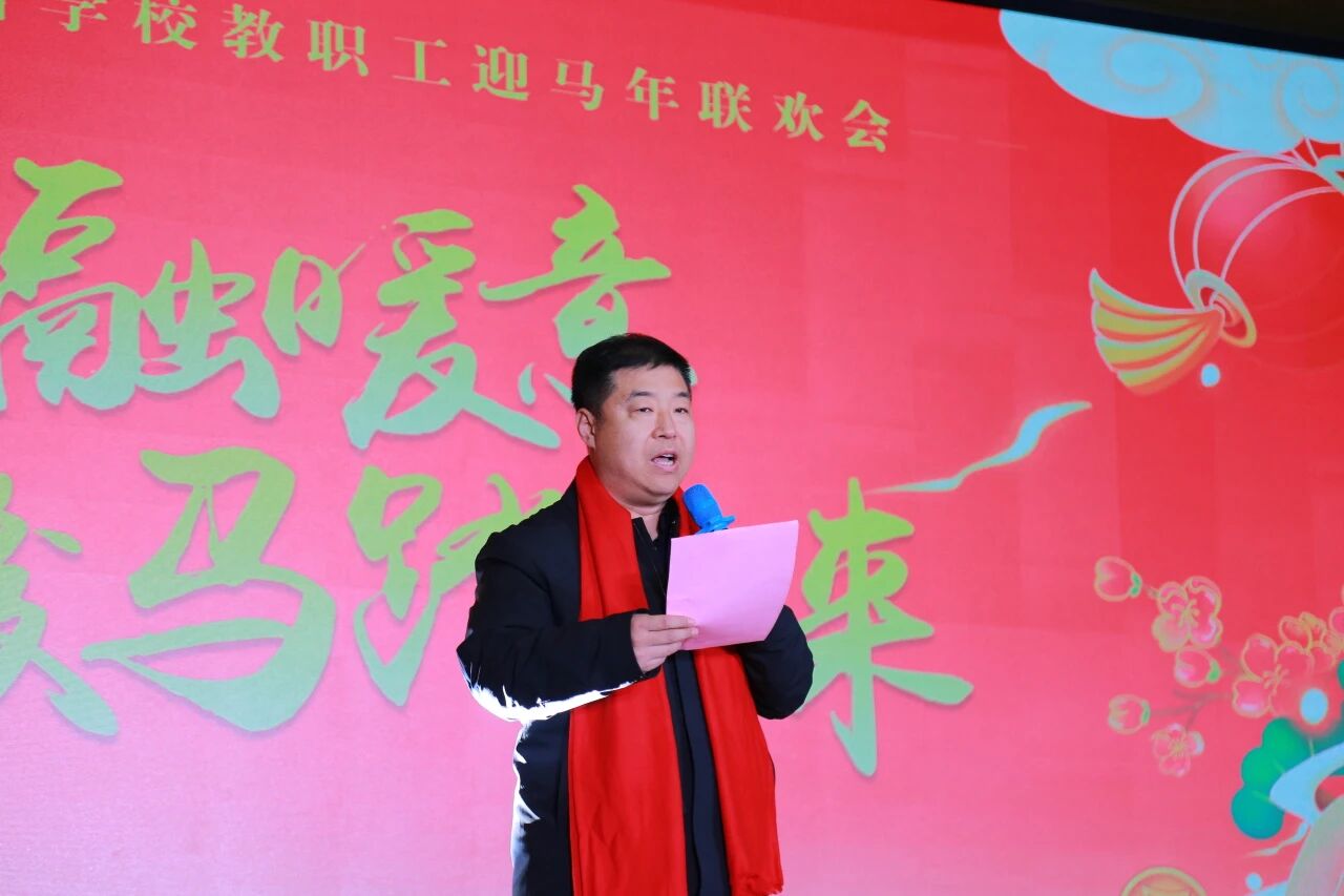理事长马永坡致辞 年会首程在学校多功能厅拉开帷幕。现场张灯结彩,年味浓厚,处处洋溢着喜庆祥和的氛围。联欢会上,教职工们各展所长,带来了形式多样的精彩表演。