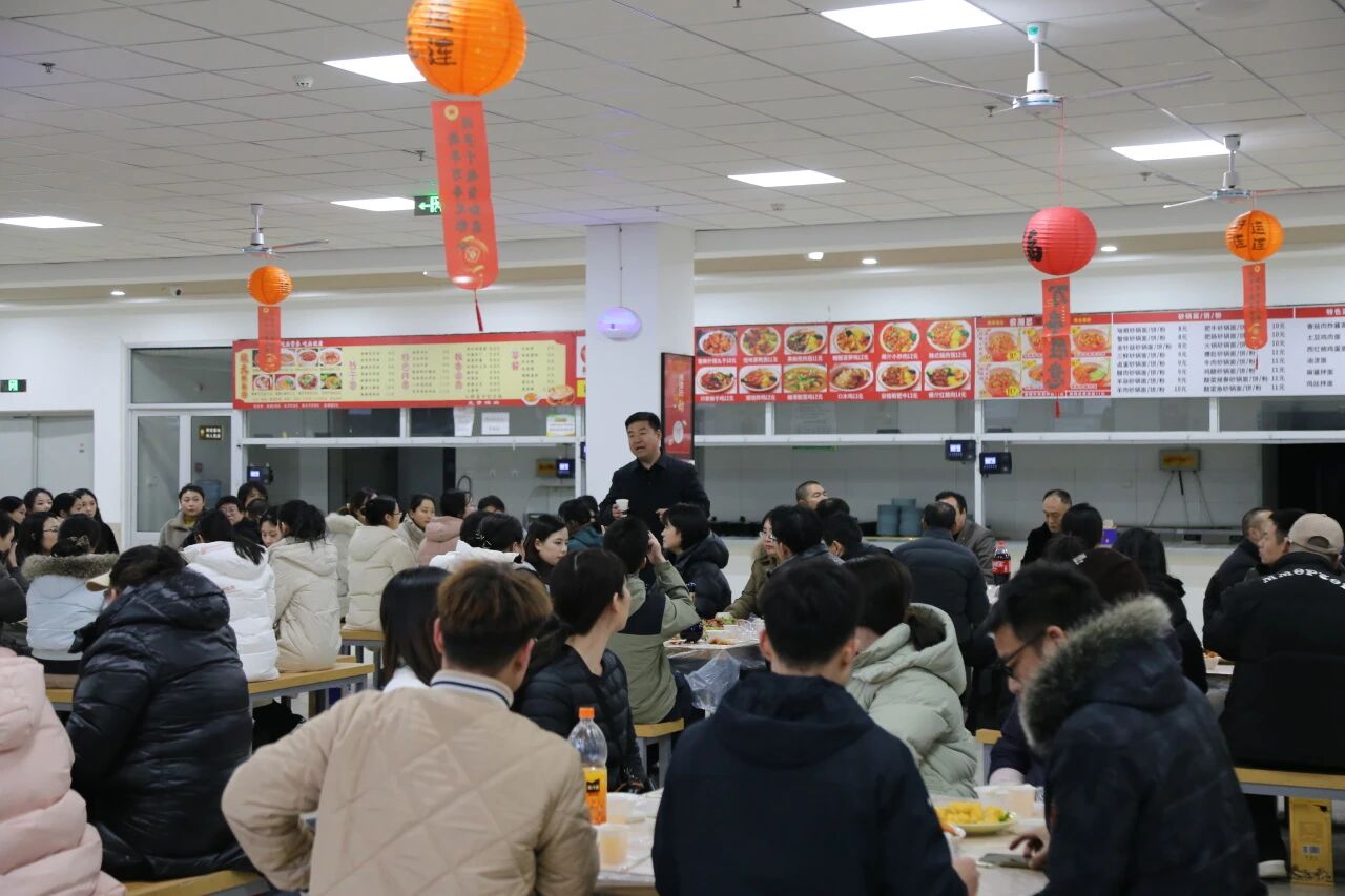 夜幕降临,教职工们移步聚餐场地,开启温馨的团圆宴。桌上佳肴丰盛,酒香四溢,大家举杯共饮、畅谈心声。席间,校领导与教职工亲切交流,感谢大家过去一年的辛勤付出,送上新春的诚挚祝福。温馨的氛围、真挚的情谊,让整个聚餐充满了家的温暖。