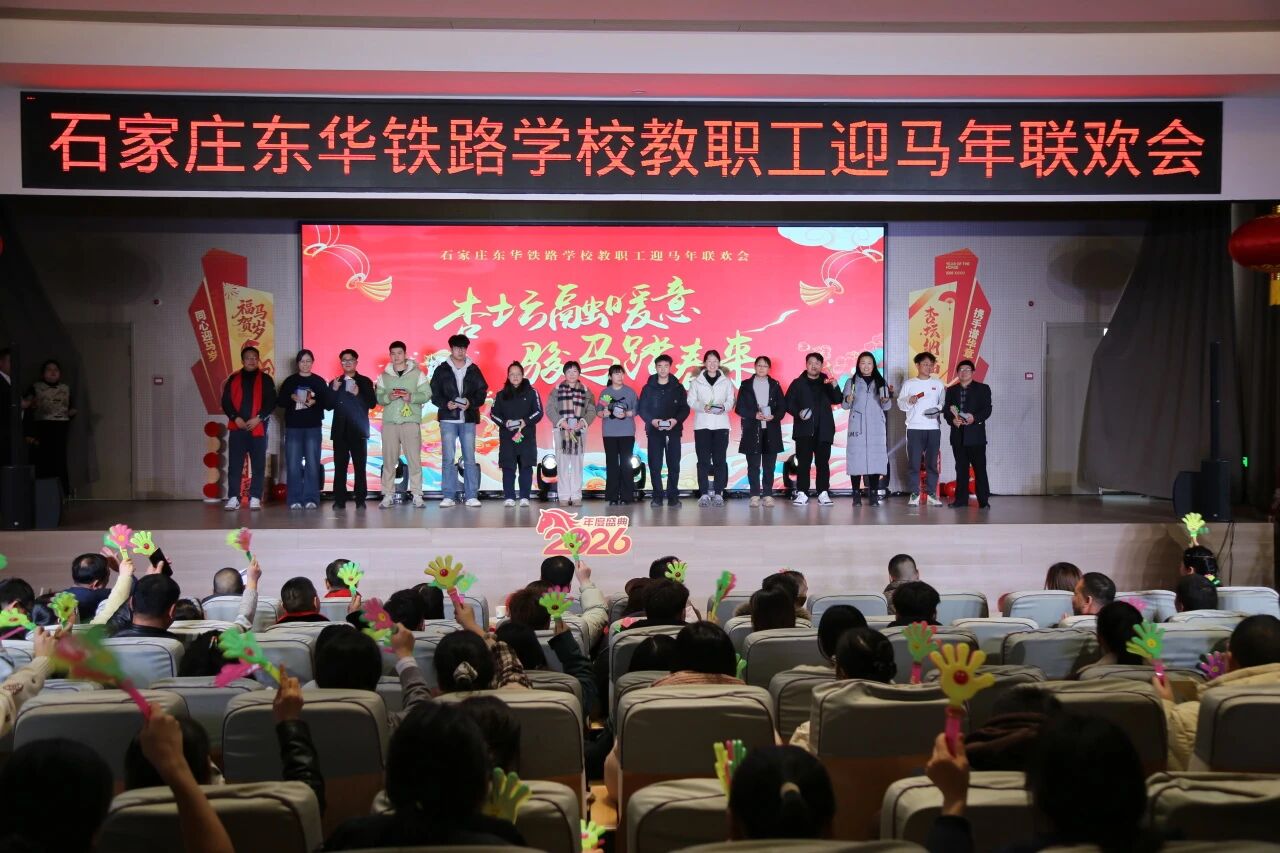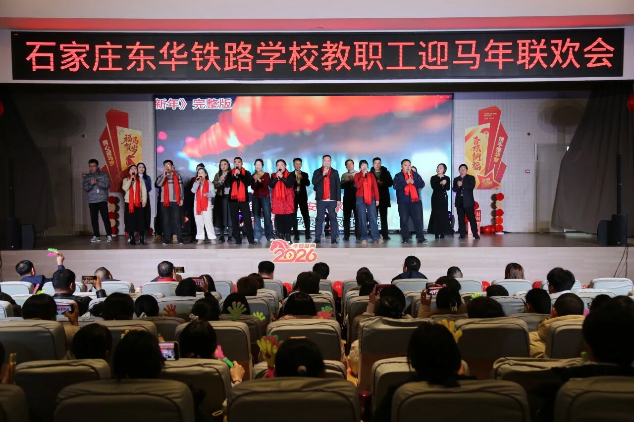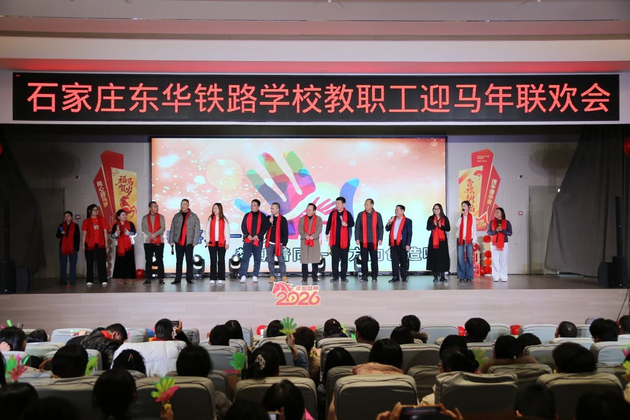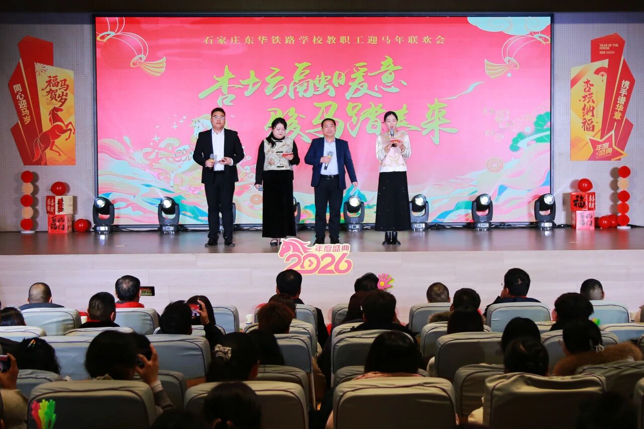 欢声笑语辞旧岁,策马扬鞭起新程。为丰富教职工文化生活,凝聚团队向心力,共贺2026丙午马年新春,2026年1月20日石家庄东华铁路学校以“杏坛融暖意,骏马踏春来”为主题的2026年教职工迎马年会圆满举行。全体校领导与教职工齐聚一堂,以精彩纷呈的节目、趣味十足的互动,共庆新春佳节,展望美好未来。